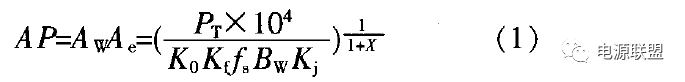 使用AP法,即先求出磁芯窗口面积Aw与磁芯有效截面积Ae的乘积AP(称磁芯面积乘积):